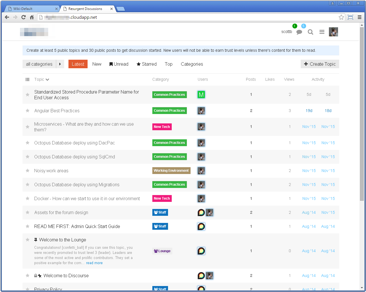 - Installed Discourse in Azure in attempt to foster group discussions. (Jury is still out on people using the tool)