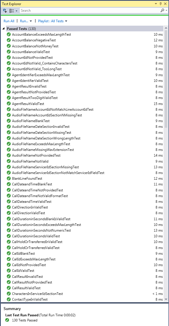 We all agree that our unit tests should be fast so they can be run often. However, this was another one of those rare cases that I don't see on most projects. It ran all 130 tests in under 2 seconds.