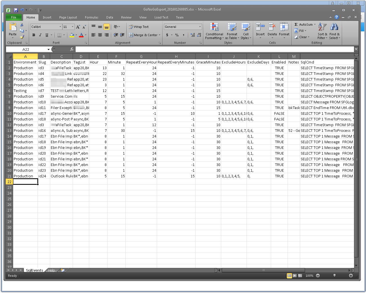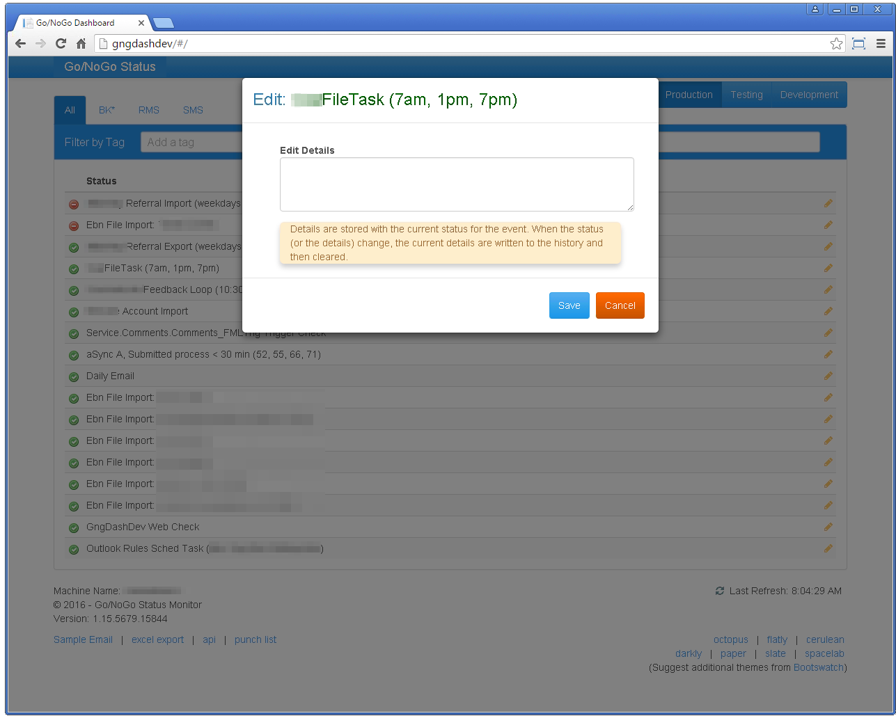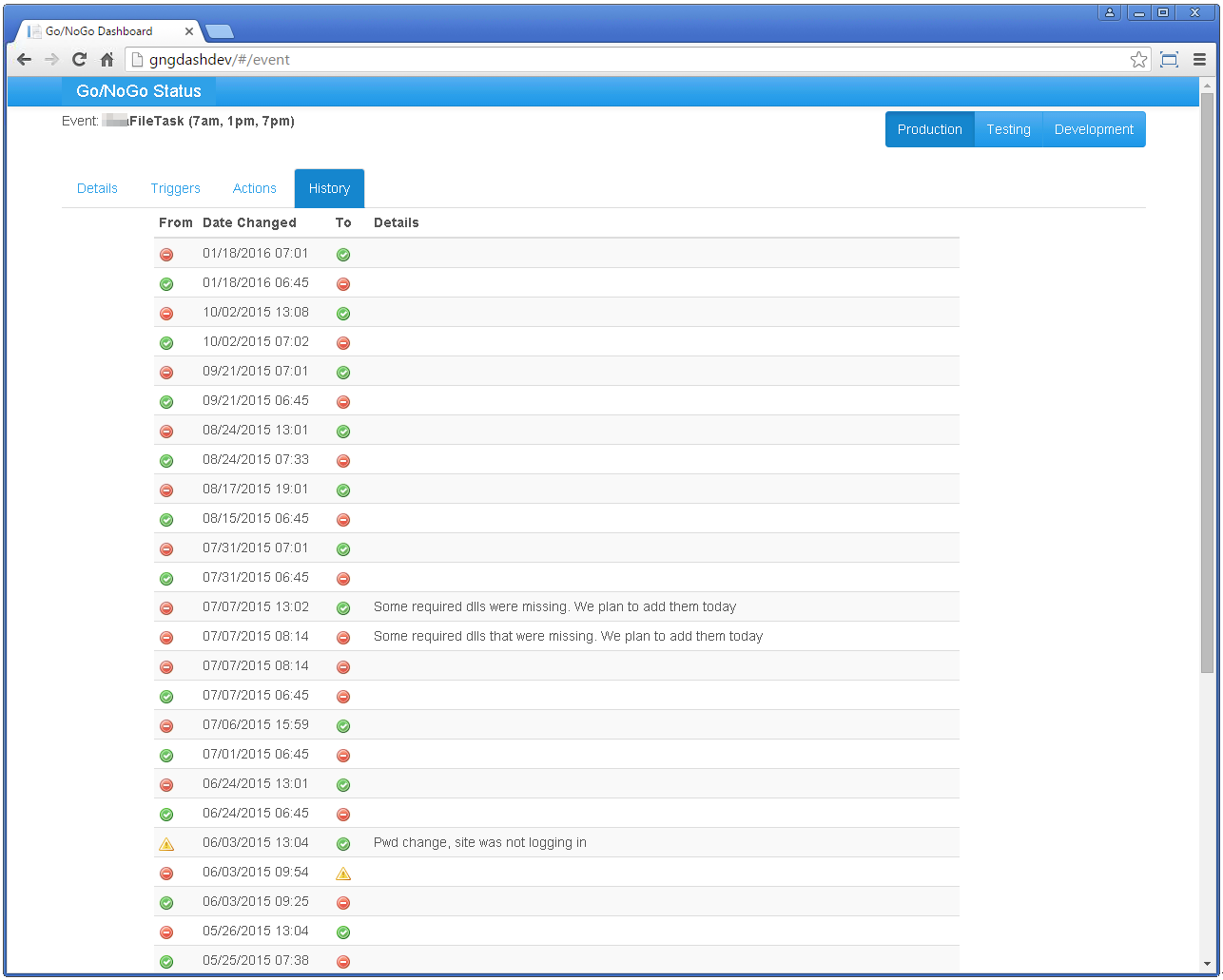 The idea for this project was to create a "Health" dashboard similar to Amazon or Azure. In our environment, we don't seem to have a problem getting emails when things fail.Our problem was that were not getting notified about events that should have happened but did not. For example, if the process to import a file normally runs every morning, but it does not run one morning, we didn't know about it. Since it didn't run, it did not send an email about any problem.