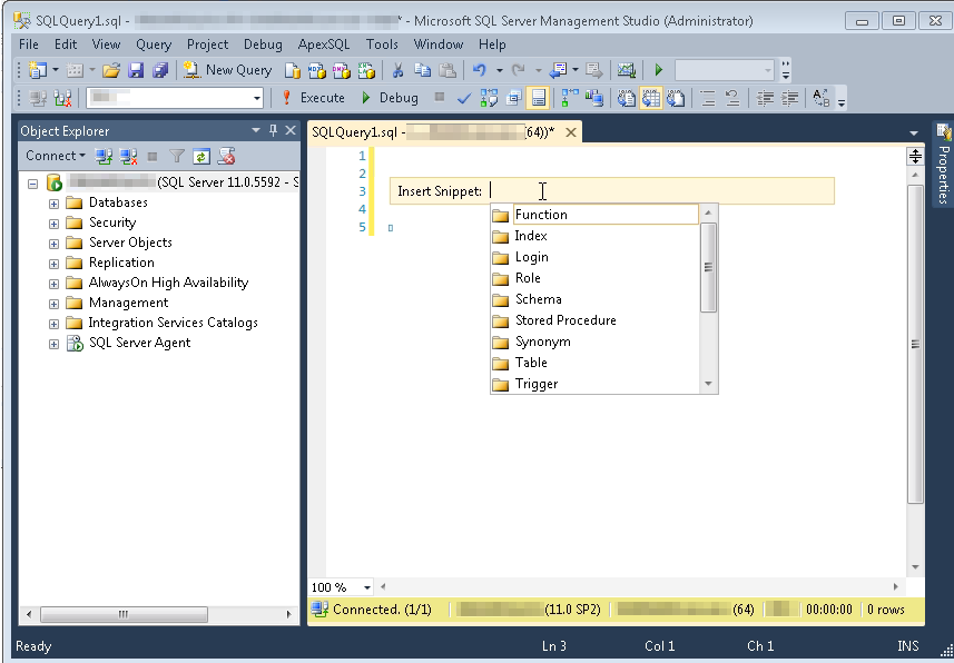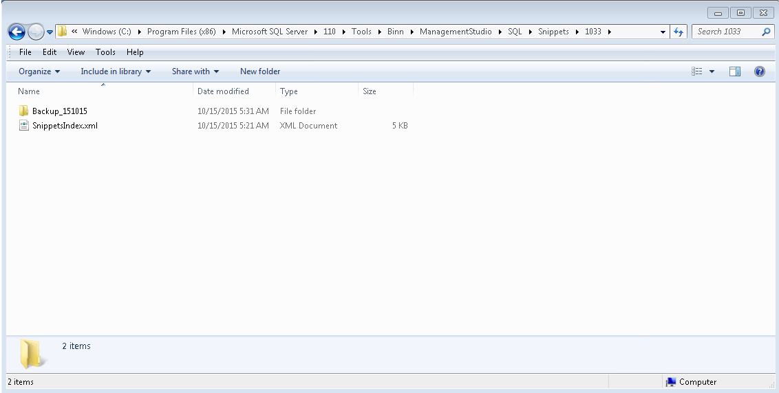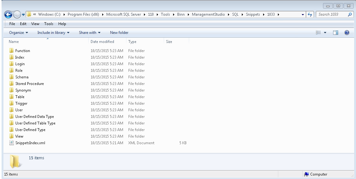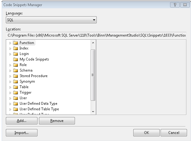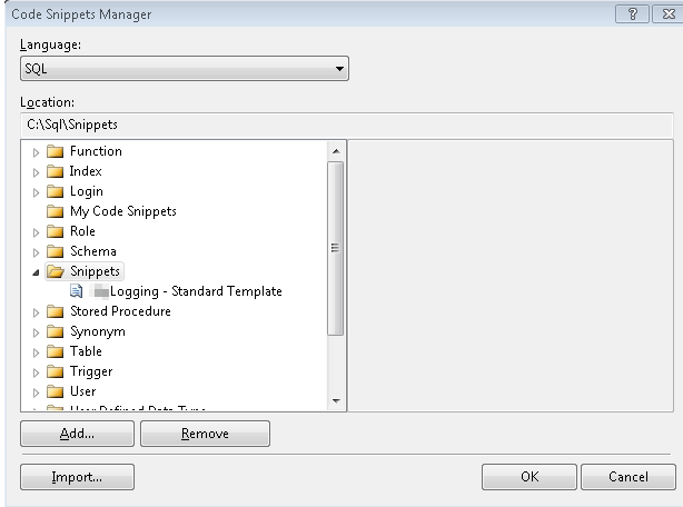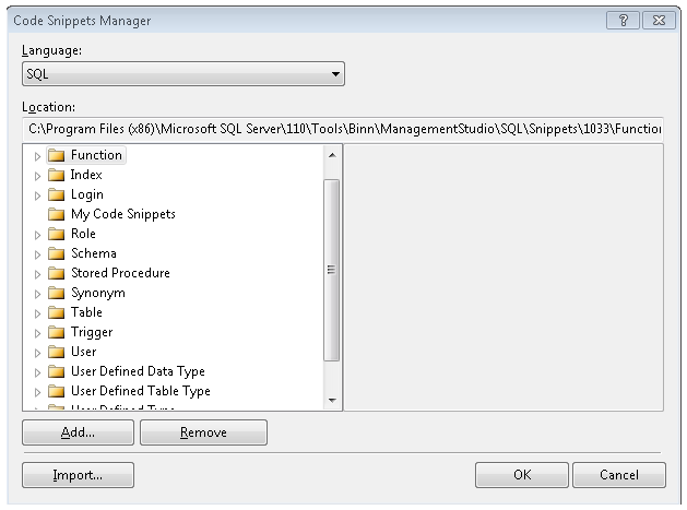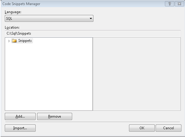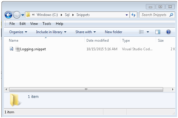 Create a Snippets folder somewhere (I like c:SqlSnippets)